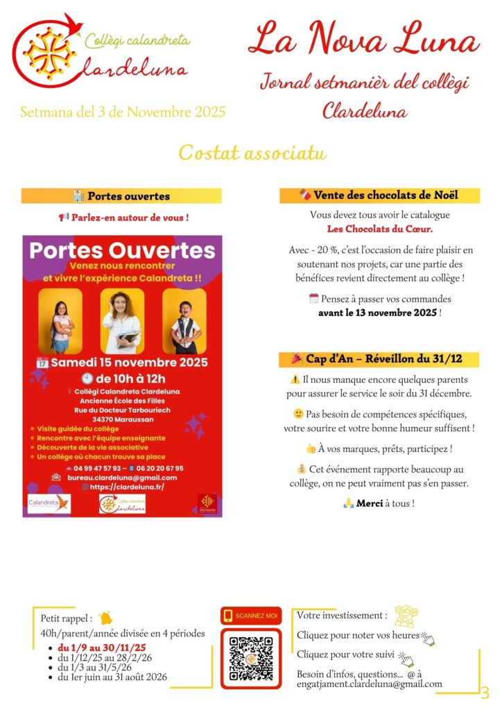 La Nova Luna est une lettre d’information hebdomadaire où vous trouverez une partie pédagogique et une partie associative.