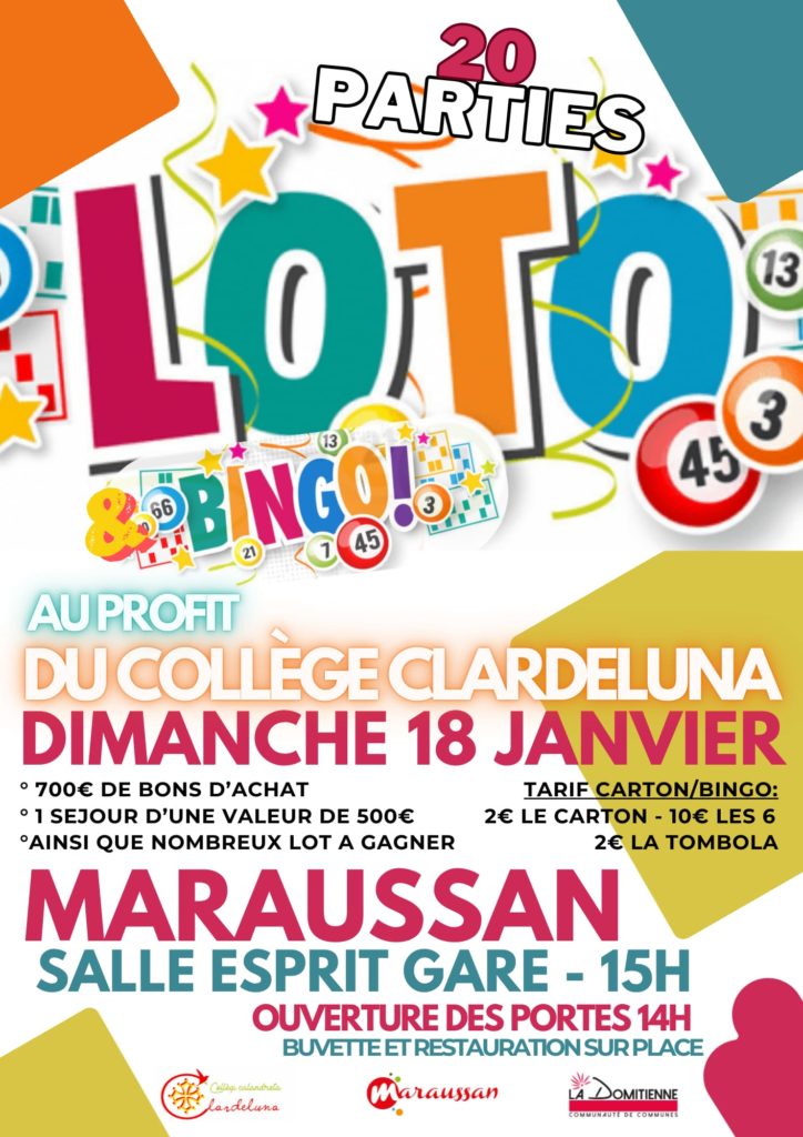 Un grand loto est également organisé au profit du collège Clardeluna le dimanche 18 janvier 2026.