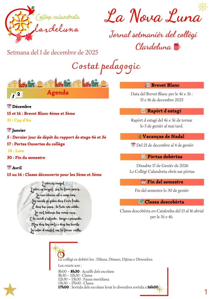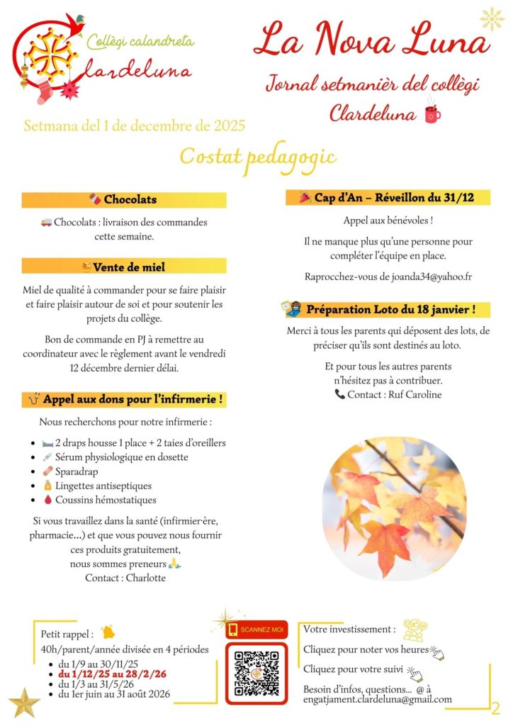 La Nova Luna est une lettre d’information hebdomadaire où vous trouverez une partie pédagogique et une partie associative.