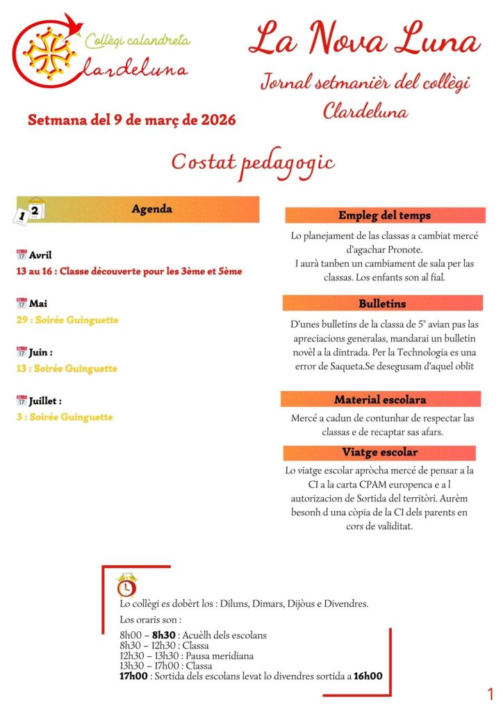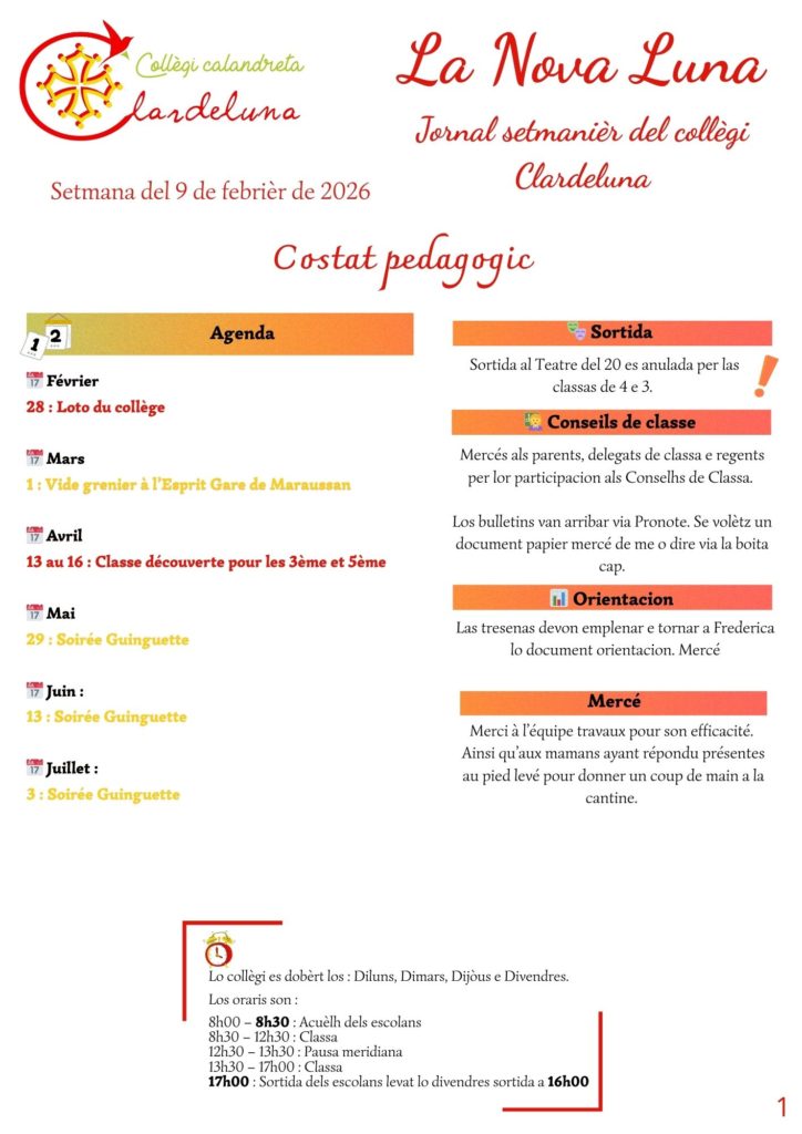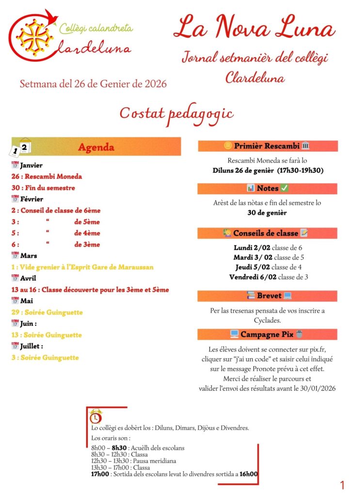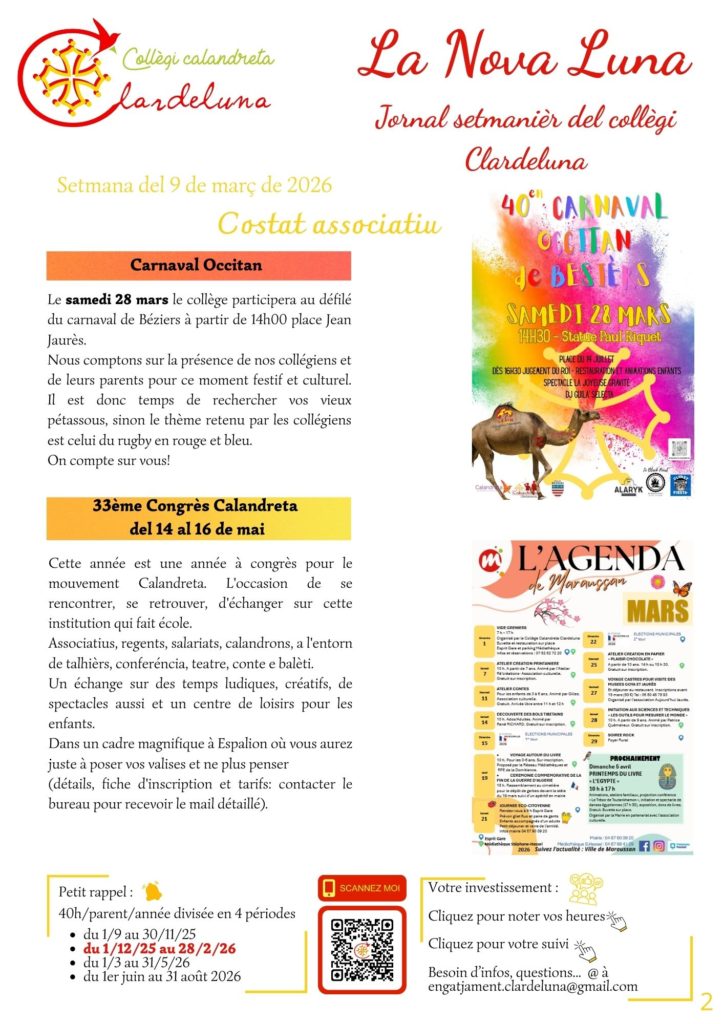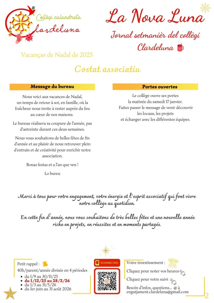 La Nova Luna est une lettre d’information hebdomadaire où vous trouverez une partie pédagogique et une partie associative.