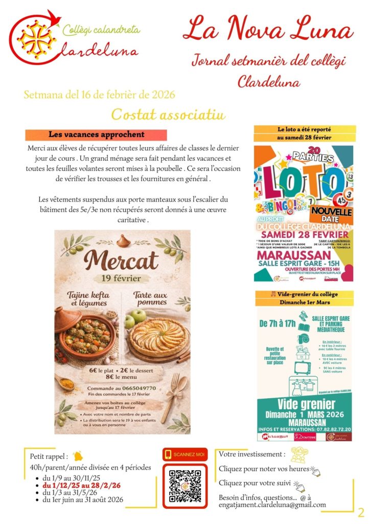Lisez la attentivement afin d’être au courant de toutes les infos concernant la scolarité des élèves et l’investissement associatif.