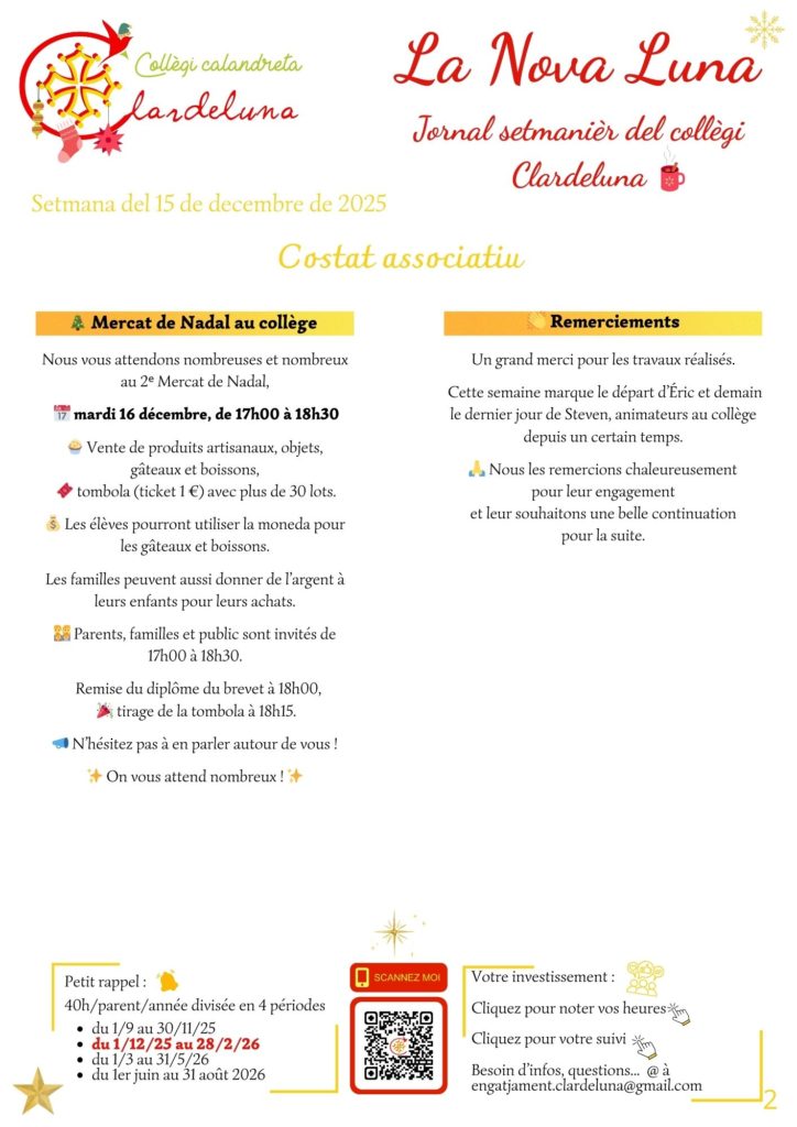 La Nova Luna est une lettre d’information hebdomadaire où vous trouverez une partie pédagogique et une partie associative.